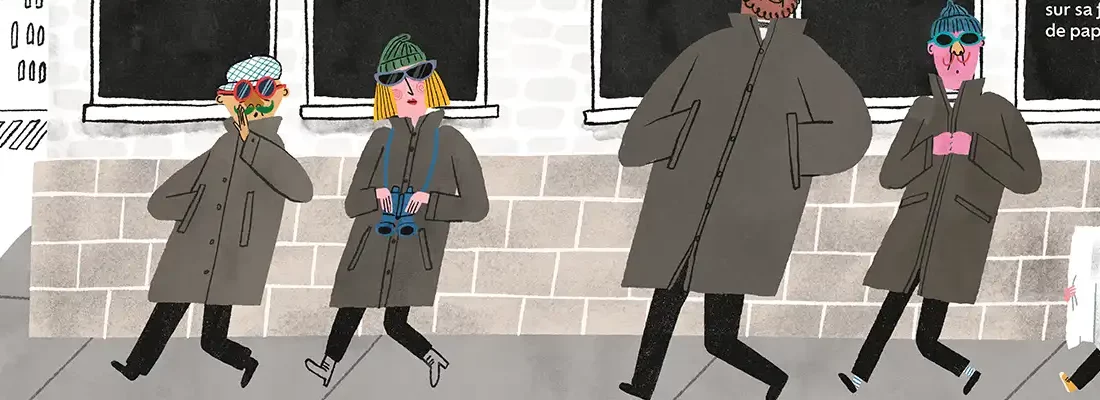 En face, tout en boucles, souriant et rêveur, leur neveu Arthur est mis à contribution : il doit dessiner le plan censé les mener jusqu’à la banque. Chacun des brigands dévoile sa spécialité, mais les consignes qu’ils se transmettent se déforment d’un relais à l’autre.