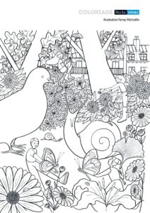 Amuse-toi à colorier l’autre proposition de Une de notre numéro de rentrée de notre illustratrice complice Fanny Michaëlis !