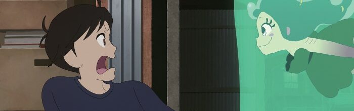 Un dessin animé japonais où, comme souvent, le héros est un jeune solitaire, marqué par le divorce de ses parents. Musicien (électronique) émérite, il rejoint un groupe sur l’île de pêcheurs où il s’est exilé, et découvre une sirène qui chante et danse comme personne. L’idée est de garder secrète la nature de sa nouvelle amie, mais cela ne va pas être simple…
