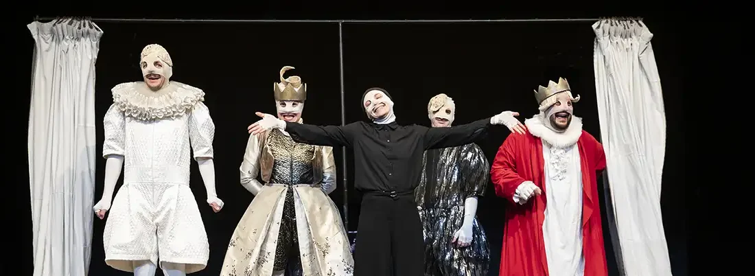 Hommage d’un auteur metteur en scène d’aujourd’hui au plus célèbre des dramaturges français, Molière et ses masques est une ode au théâtre, aux acteurs, à la farce et à sa puissance politique. Si l’histoire est ancienne, la relation de l’artiste et du pouvoir est aujourd’hui plus que jamais d’actualité.
